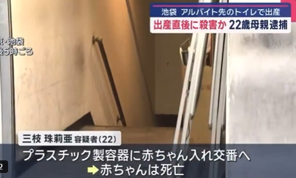 三枝珠莉亜容疑者(22)は殺害した赤ちゃんをバケツに入れ、知人と共に出頭した模様。